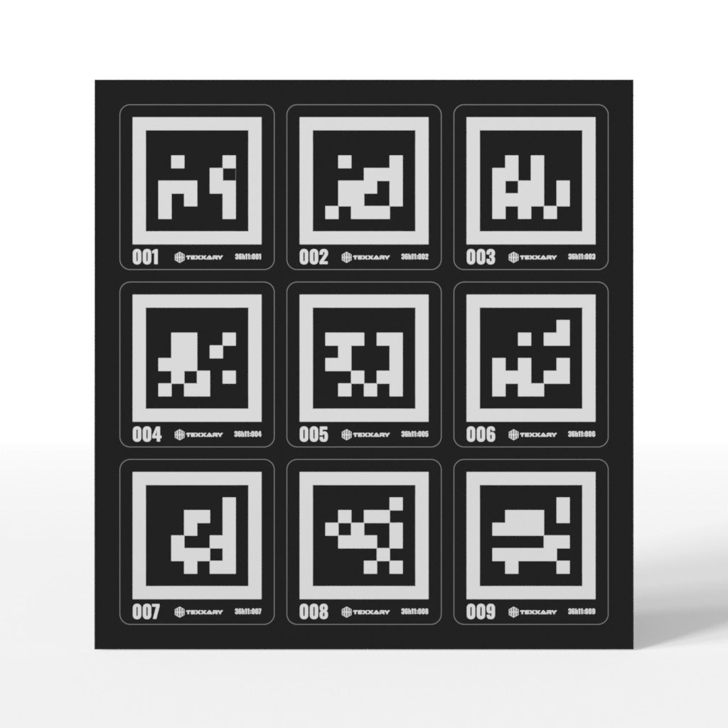 Our 36h11 April Tags Sticker Sheets are designed for precision and durability in indoor and outdoor applications. Each sheet features nine april tags stickers on a matte plastic film, optimized for scanning and photogrammetry tasks. These stickers are removable, tear-resistant, and boast a non-reflective finish for accurate data capture. Engineered for resilience, they are waterproof, UV-protected, and withstand diverse environmental conditions. Washable and reusable, these vegan stickers offer a sustainable solution for scanning projects. Ideal for professionals seeking reliable, high-performance tools for their photogrammetry needs.