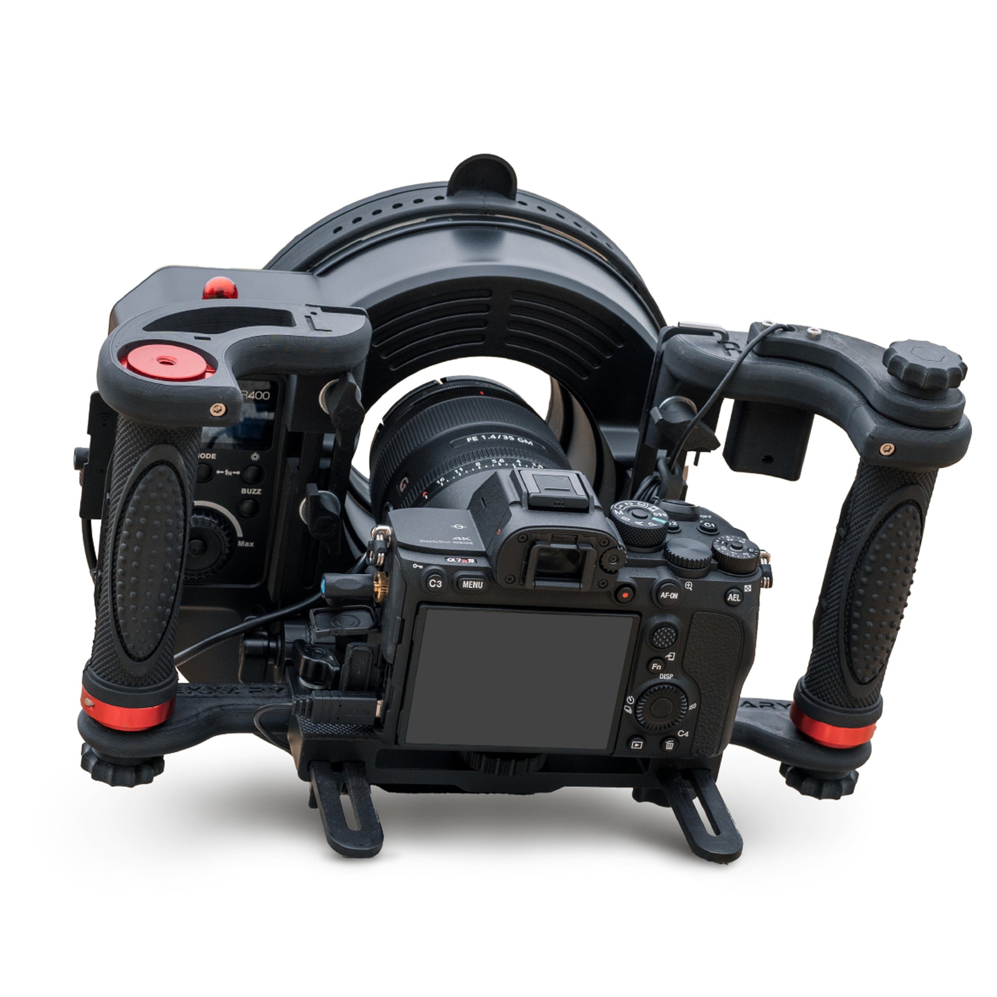 This handle set is designed to pair perfectly with the AR400 Ringflash Polarizing Filter or R200 Ringflash Polarizing Filter from our shop. When combined, the grip and polarizer setup ensures optimal image quality by reducing glare and reflections, especially in photogrammetry applications where cross-polarization is key to capturing clean, detailed scans.