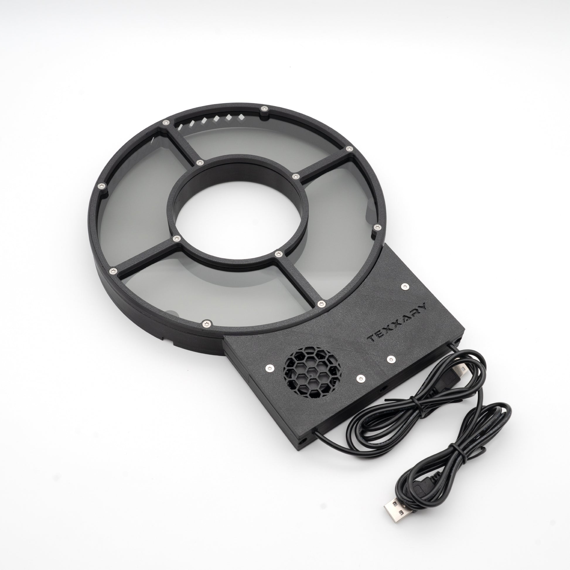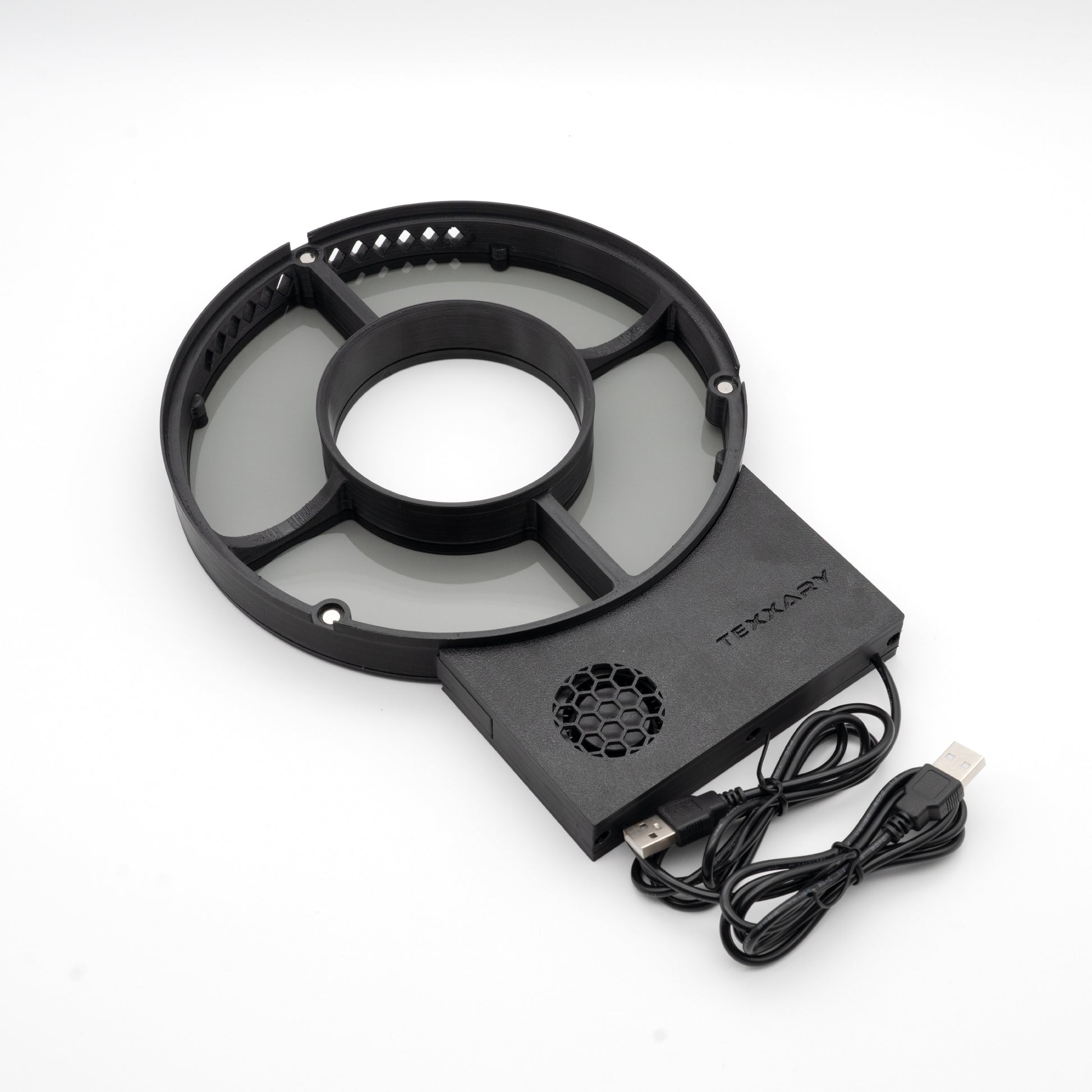 Extended scanning sessions can generate heat, potentially affecting the ring flash’s performance. This filter comes with two integrated USB fans that keep your ring flash cool and stable, even during long photogrammetry sessions. This ensures consistent lighting quality and protects the longevity of your equipment. Please note that no batteries are included, so the fans must be powered via a USB power bank or other USB source.